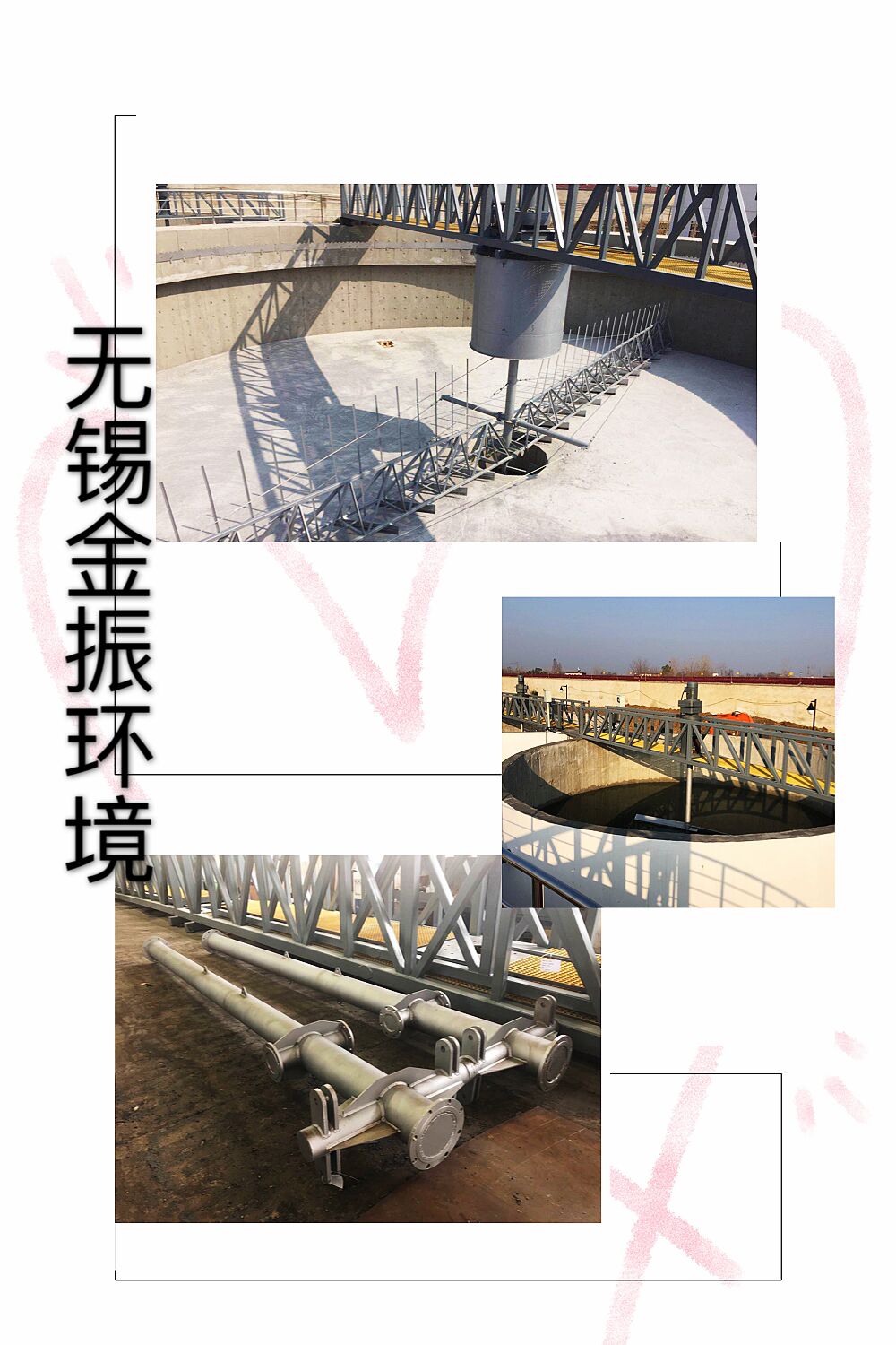 祝賀我公司的22m中心傳動刮泥機、次氯酸鈉投加裝置、碳源投加裝置成功用于10萬噸/天的肥東縣眾興自來水廠,并已調(diào)試運行,達標排放,再次感謝客戶的信任,無錫金振將一如既往的精心打造更優(yōu)質(zhì)的產(chǎn)品服務(wù)于社會。下圖為安裝現(xiàn)場: