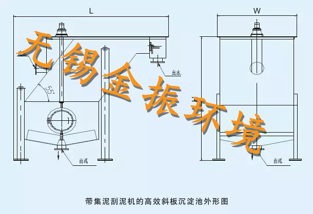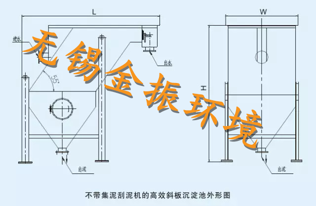 此類普通高效斜板沉淀池不含刮泥機(jī),適用于污水中污泥負(fù)荷較小,污泥沉降性能好的水質(zhì)。污泥通過下端泥斗濃縮后排出。