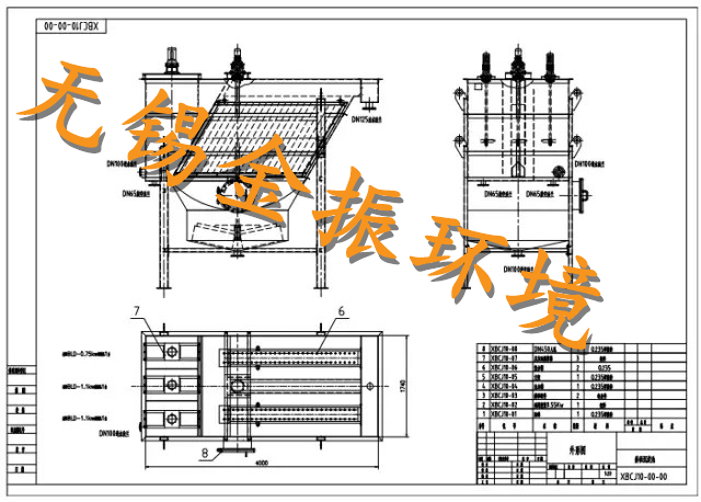 選型舉例:根據(jù)設(shè)計(jì)負(fù)荷,如果廢水中懸浮物濃度較高,污泥負(fù)荷較大且污泥沉降性能良好,則選擇帶刮泥機(jī)斜板沉淀池,處理水量Q=100m3/h,則所選型號(hào)為JXBC-GN100就可以了。