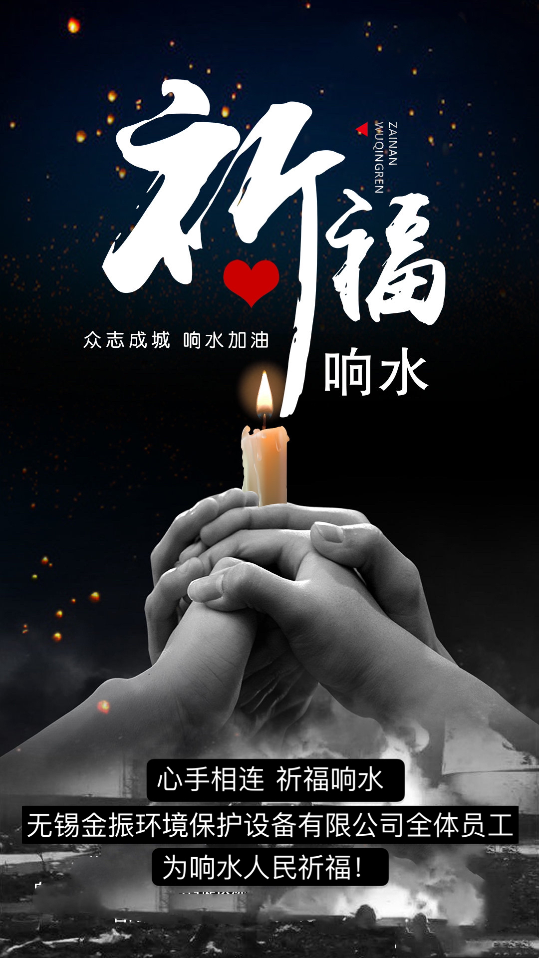心手相連 祈福響水無(wú)錫金振全體員工為響水人民祈福!向所有醫(yī)務(wù)工作者致敬!向救援的消防官兵致敬!向所有參與救援的志愿者致敬!