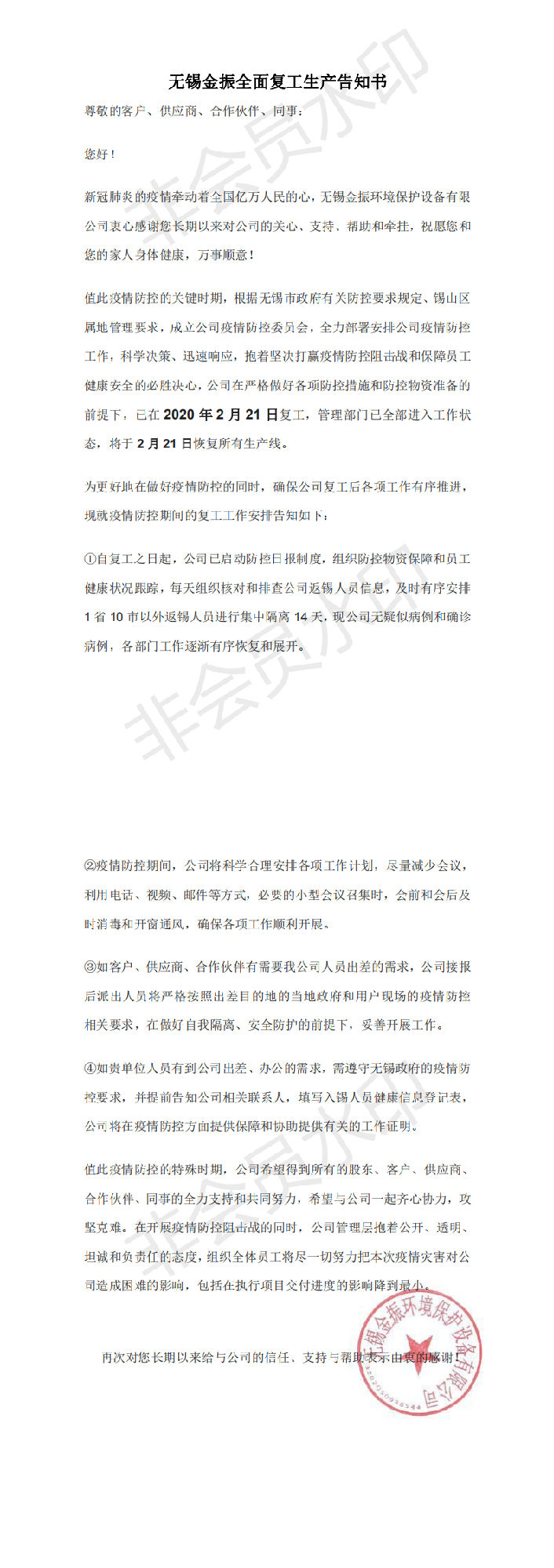 無(wú)錫金振全面復(fù)工生產(chǎn)告知書(shū)